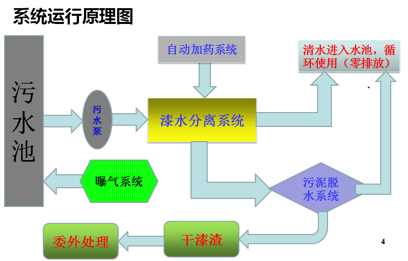 4、本系統(tǒng)全自動運行,可以與涂裝設(shè)備聯(lián)動控制,系統(tǒng)自動將油漆渣和水進行分離,節(jié)省人力成本;